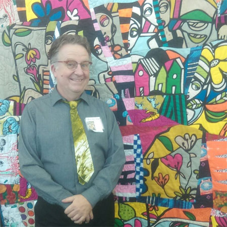 Mac now lives in San Francisco and is a frequent speaker at quilting associations around the state and at Handicraft and Art Fairs. Mac shares that he loves to have his quilts hanging next to quilts made by children because “Children have a certain freedom to do what they want without the objections that we adults have learned over the years.”