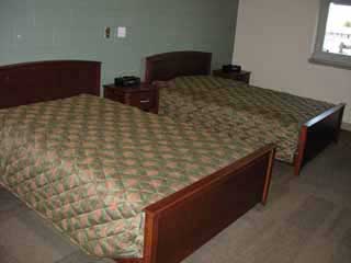 Each room had two beds, a flat screen television, desks, lockers, a sink suitable for wheelchair and a wheelchair friendly shower. Bed size: I think they were full, but when I return on Wednesday I’ll take one of my full quilts to toss on an unoccupied bed for measurement perspective. Everything was clean, friendly, well laid out and totally bare – nobody has moved in yet. (Guess what they are doing today…..)